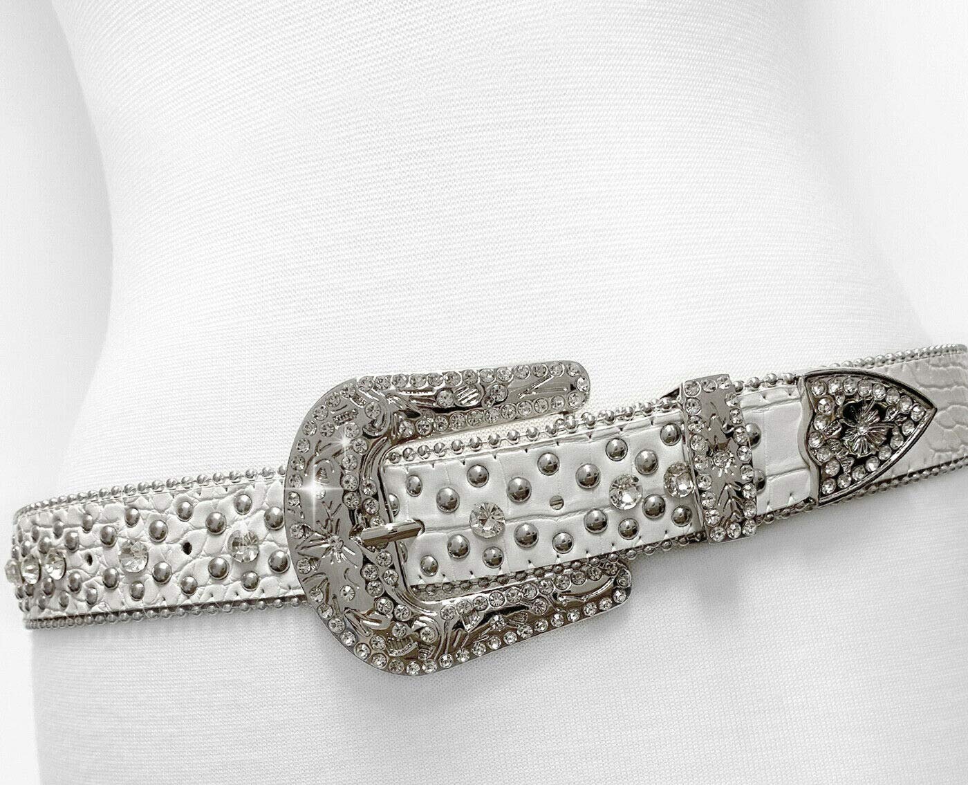 - Engraved large rhinestone buckle with matching belt keeper and tip set, covered with High-Quality sparkling rhinestones and studs, gorgeous fashion and beautiful.