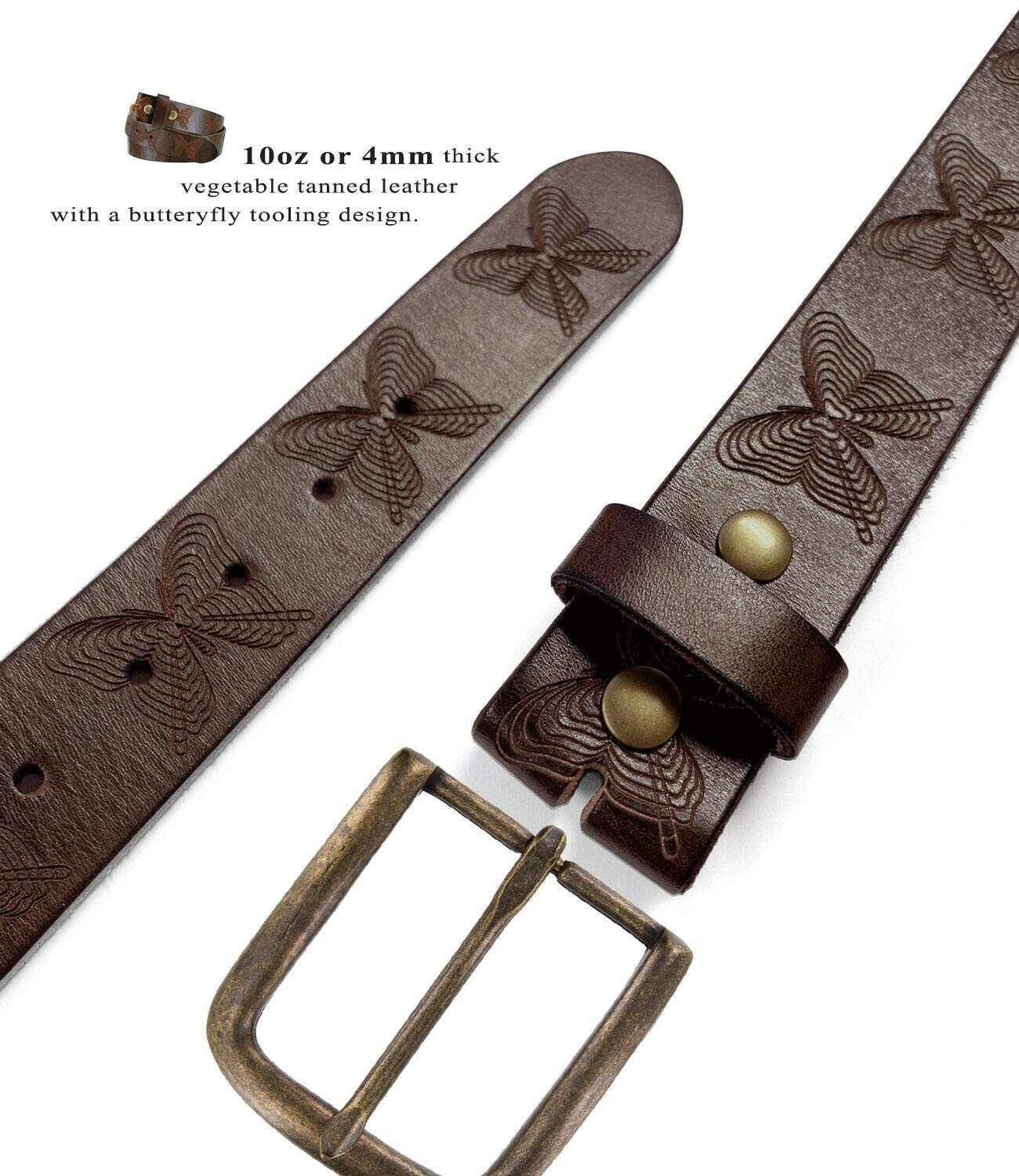 - 10oz or 4mm thick vegetable tanned leather with a butteryfly tooling design.
