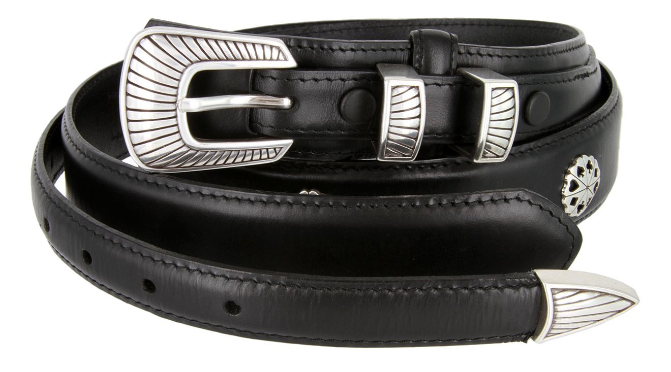 - Accented With 4-Piece Sterling Silver Finish Buckle Set And 5 Poker Card Suit Conchos.