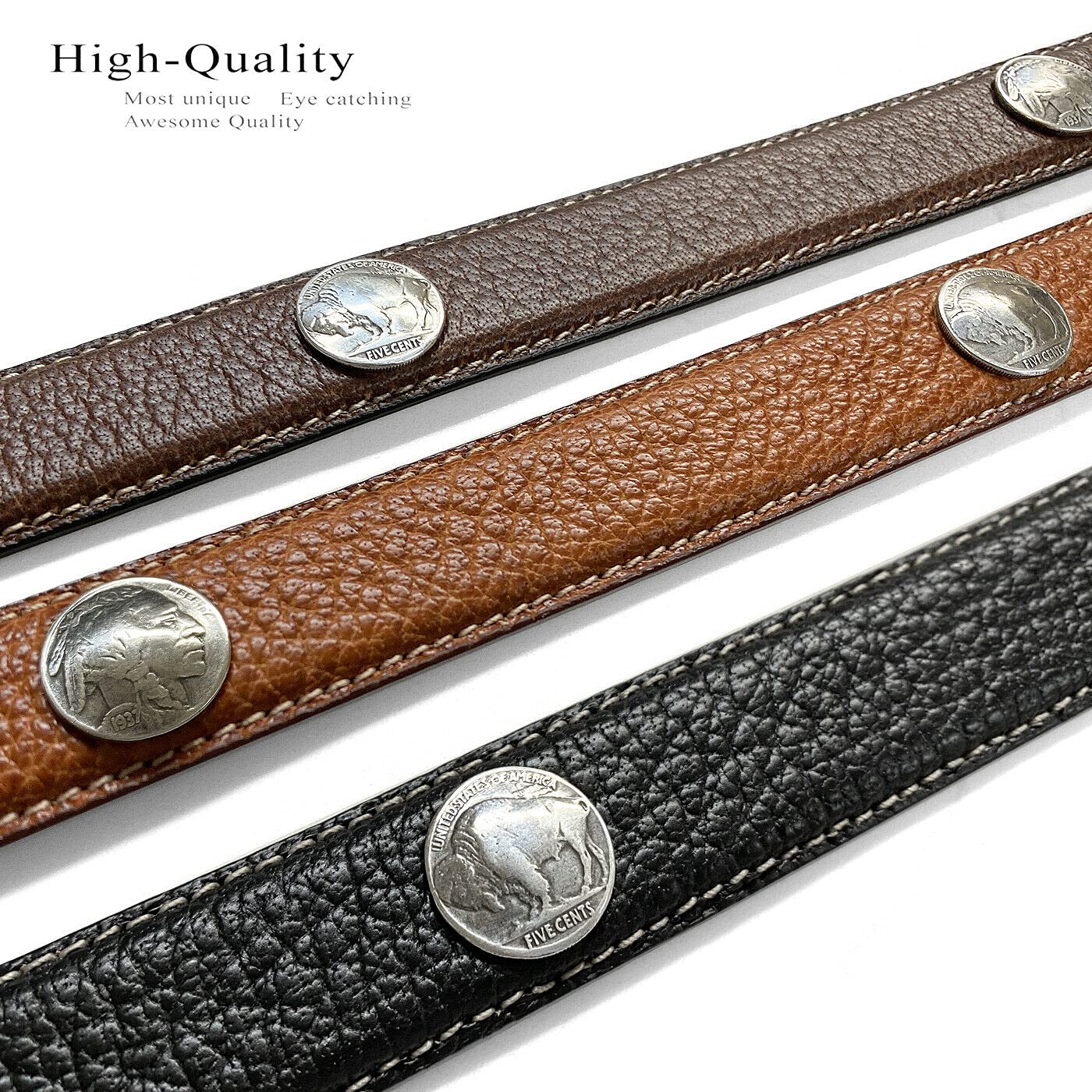 - Men's Conchos Belt American Bison Genuine Leather Dress Belt 1-1/8"(30mm) Wide