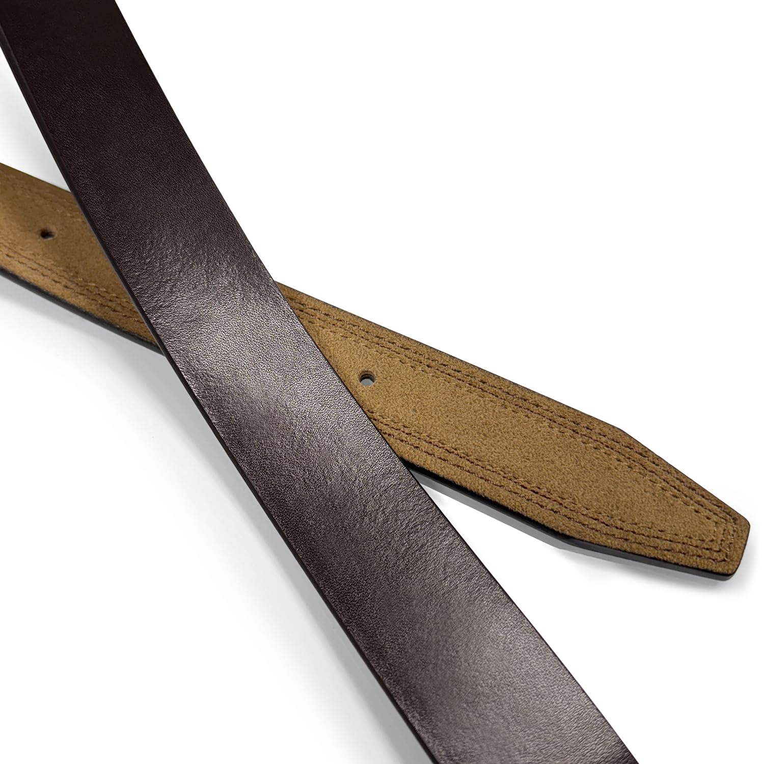 - * The smooth brown and suede taupe finish provides two color options in one belt strap, enhancing its practicality for various outfits. (No Buckle included)