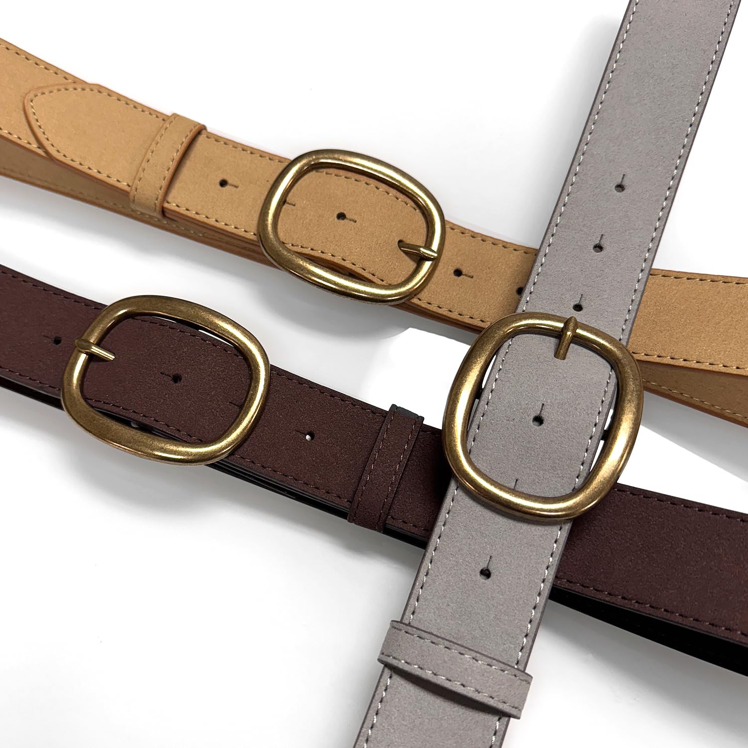 - * Made from High-quality genuine suede leather. Antique Gold Classic Oval buckle. Buckle Size approximately: 2-3/4"(W) x 2-1/4"(H).
