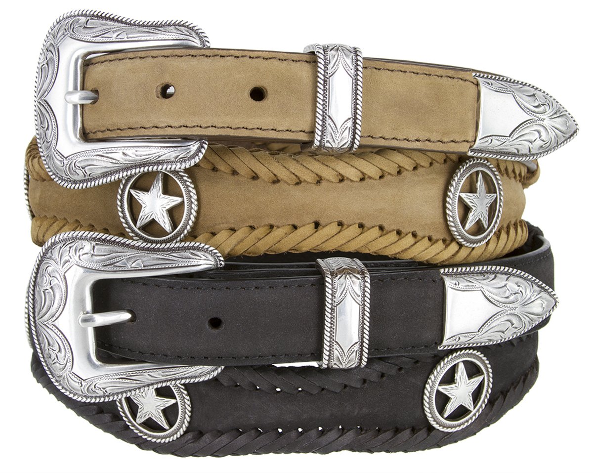 - Western antique silver engraved buckle set with star conchos